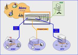 SRX10 installed on the edge of Metro networks is the root for a lot of applications in the access and First Mile area. Either copper or fiber optic installation can be served from the Central office or cabinet. Full management capability for installed and remote connected line-cards offers the operator easy access and supervisory for the installed infra-structure.